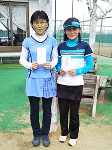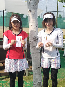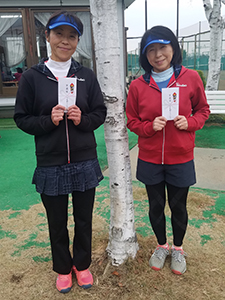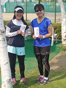 展開はお互い雁行陣を主体とするスタイル。序盤、光永さんがスライスを織り交ぜチャンスメイクし、三好さんが決める形がはまっていた。中盤以降になると逆にペースは八木さん・山本さんペアに。スピンストロークでポーチを封じ、とにかく粘り強くチャンスを作る。光永さん・三好さんも粘りと攻めを見せたが結果はペースを維持した八木・山本さんペアに軍配が上がった。