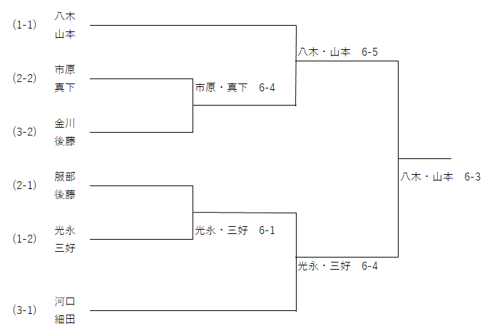 決勝戦は八木・山本さんペア対光永・三好さんペアで行われた。結果は6-3で八木・山本さんペアの勝利!!